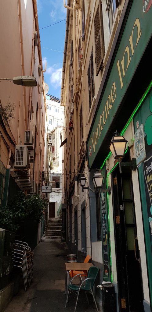 Auch unten der Ort selbst (Gibraltar City) ist ziemlich schön. Es gibt hier Unmengen von Schmuckgeschäften und Souveniershops, lauter Irish oder English Pubs, ein Marks & Spencers und Bobbys wie im echten England. Haufenweise Gässchen und alte große Gebäude, wie ich sie so mag..