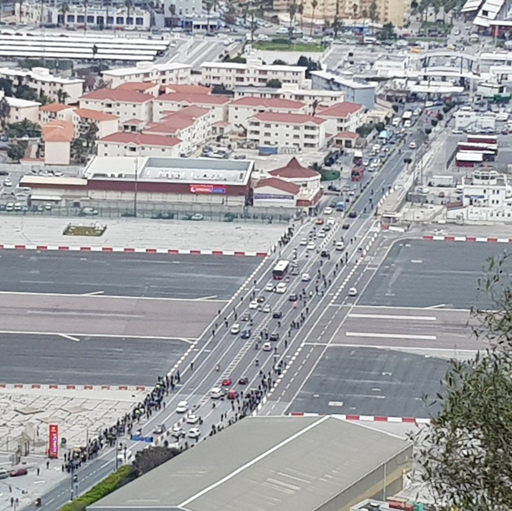 Angeblich nehmen diesen Weg täglich auch 12.000 Spanier, um im kleinen Gibraltar zu arbeiten. Den Berg im Hintergrund haben wir natürlich auch „bestiegen“, schon der erhofften Aussicht und der Affen wegen, die es dort geben soll. Wir wurden nicht enttäuscht: