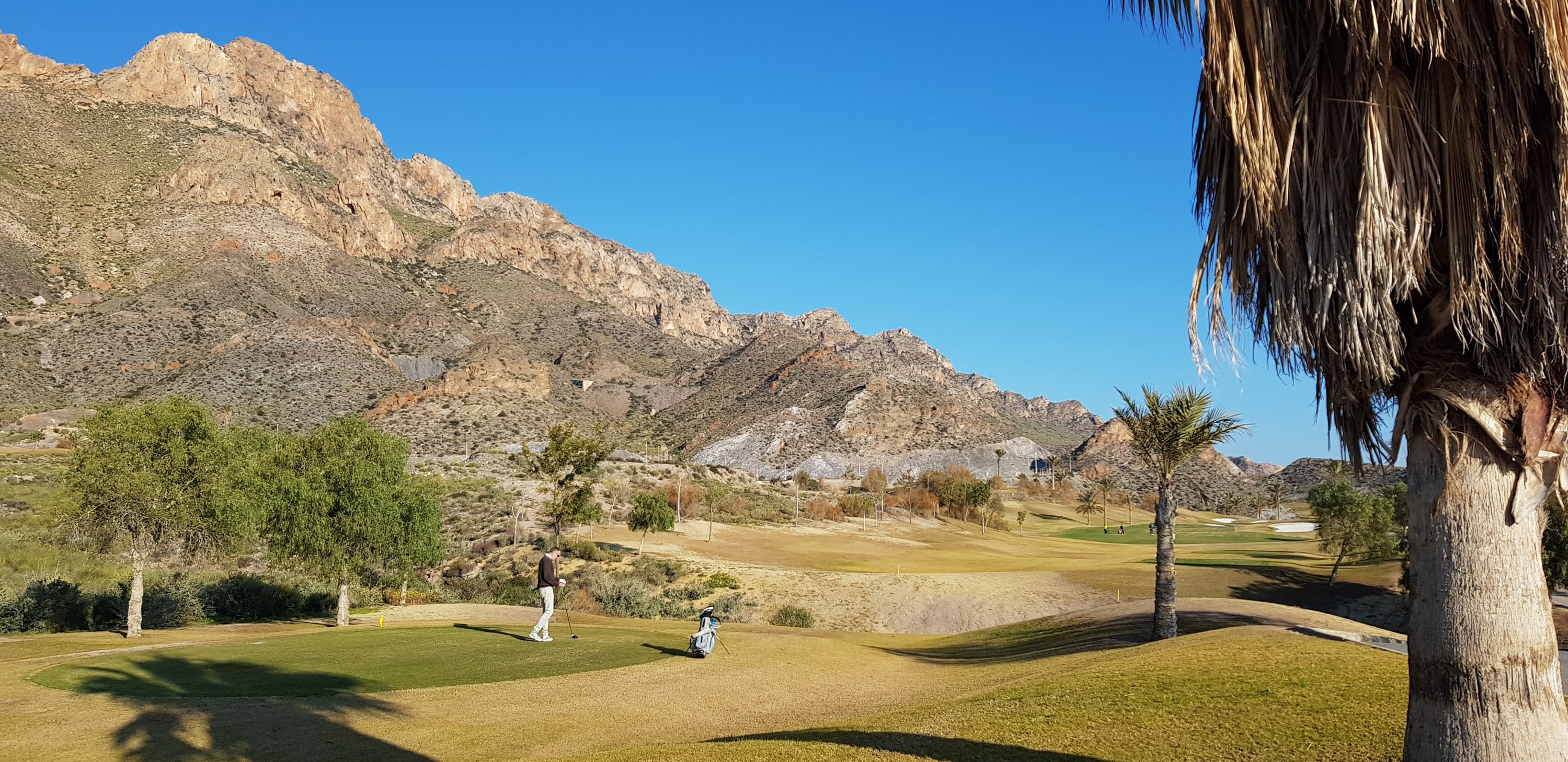 Wie so oft haben wir nach einem abendlichen Spaziergang bei untergehender Sonne noch lecker gekocht und uns auf die Startzeit am nächsten Morgen gefreut.. auf dem „Àguilon – (angeblich) the best Desert Golf Course in Europe“. Uiuiui..