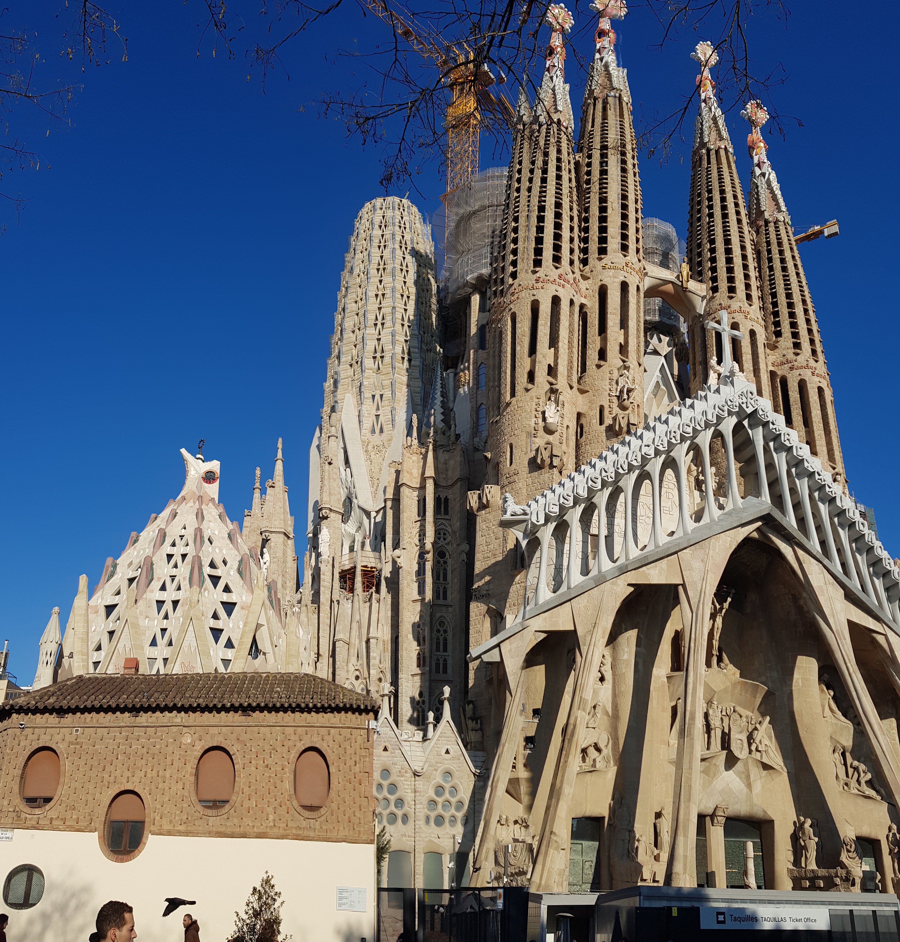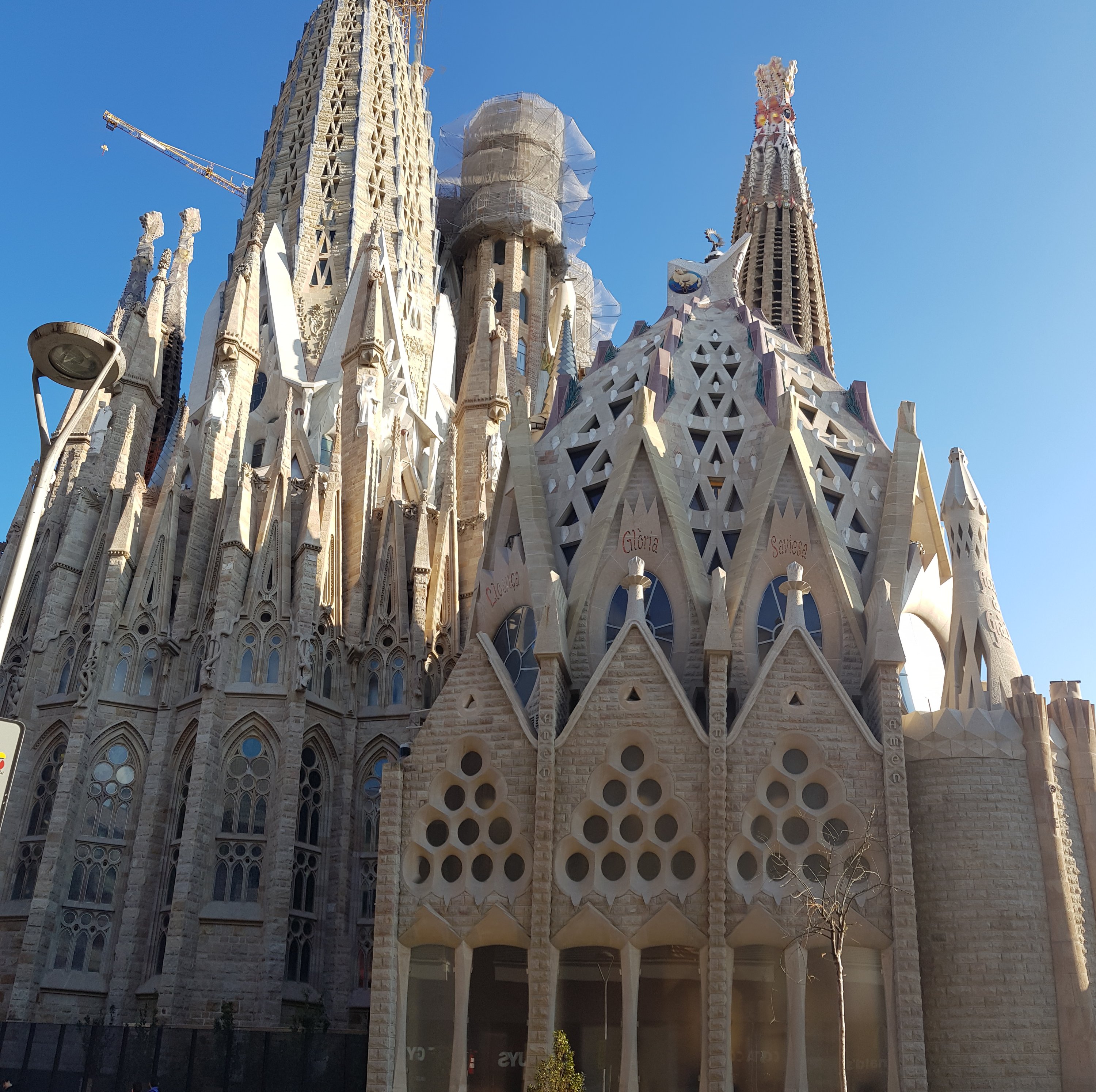 Der Bau der von Antoni Gaudí im Stil des Modernisme entworfenen Kirche ist bis heute unvollendet. Er wurde 1882 begonnen und soll nach aktueller Planung 2026 zum 100. Todestag von Gaudí fertiggestellt sein„, lernen wir fasziniert von Wikipedia und kommen aus dem Staunen über all die Details an diesem Kunstwerk kaum wieder raus.
