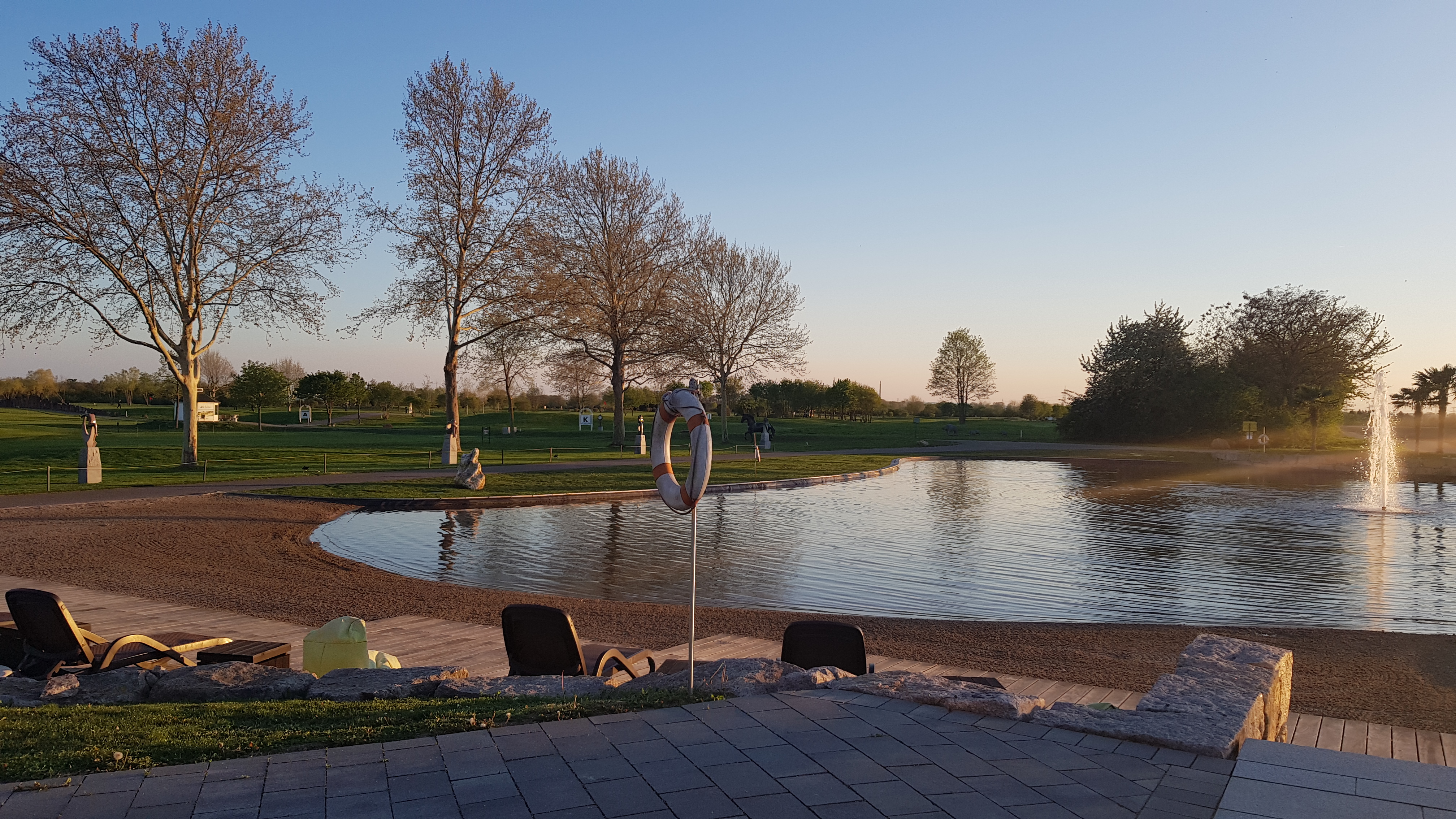 Durch die vielen Absolute-Golf-Anlagen haben wir jedes Mal die Qual der Wahl. Jetzt, da die Turnier-Saison wieder begonnen hat, lassen wir uns natürlich auch davon leiten. Samstag ein Turnier in Dackenheim? Okay, fahren wir doch schon Freitag dort hin. Eine kleine Proberunde kann ja nicht schaden 😉 und den (seit Januar d.J.) neuen Gastronomen kennen wir auch noch nicht.